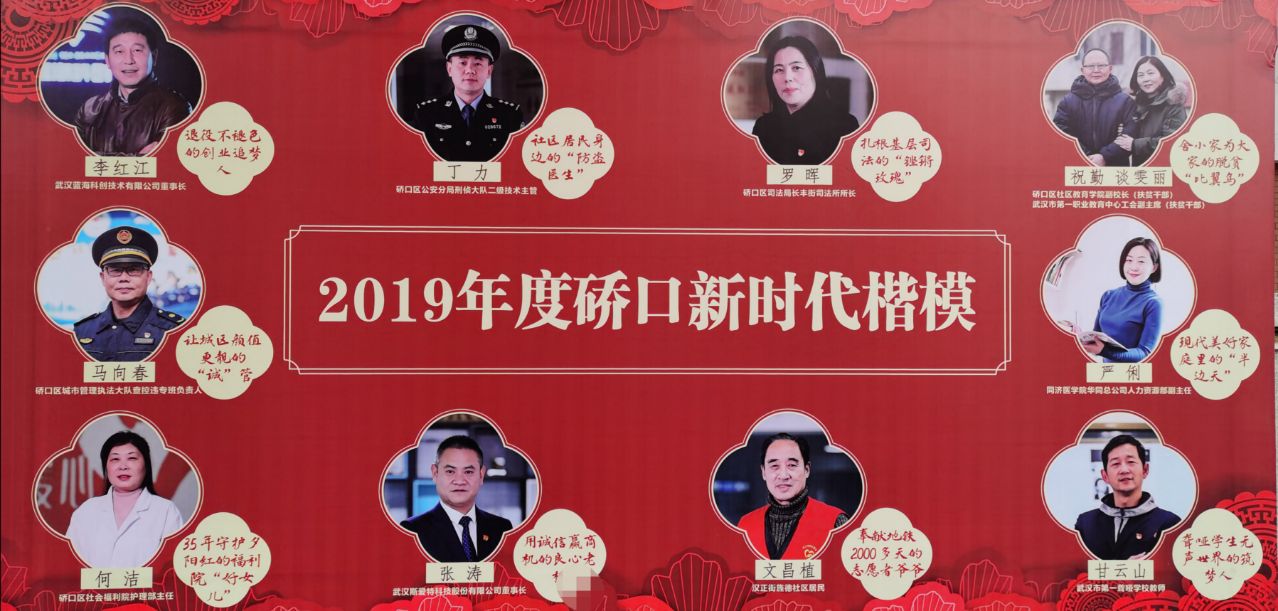 2019年12月根據硚口區(qū)委精神文明建設指導委員會《關于在全區(qū)開展2019年度“硚口新時代楷模”推評活動的通知》(硚文明委〔2019〕6號)要求按照“動員發(fā)動、民主推薦、評選審定”的程序,經區(qū)委文明委研究,確定2019年度“硚口新時代楷模”候選人10名,我司董事長張濤同志成功當選“硚口新時代楷模”稱號。