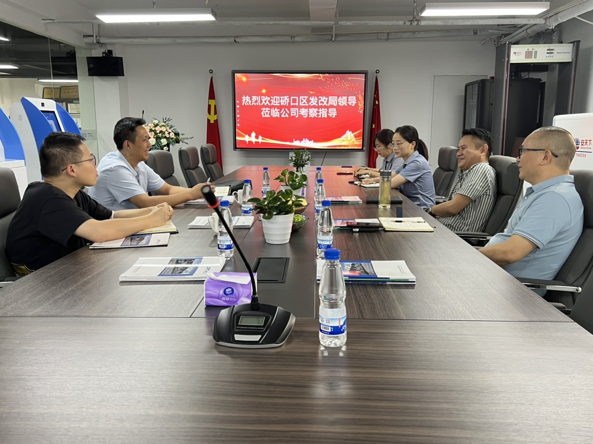 2023年8月3日下午,武漢市硚口區發展和改革局副局長李同華和優化營商環境科陶主任到公司考察指導工作,公司董事長張濤、總經理張厚元、財務部經理黃夢予以熱情接待。