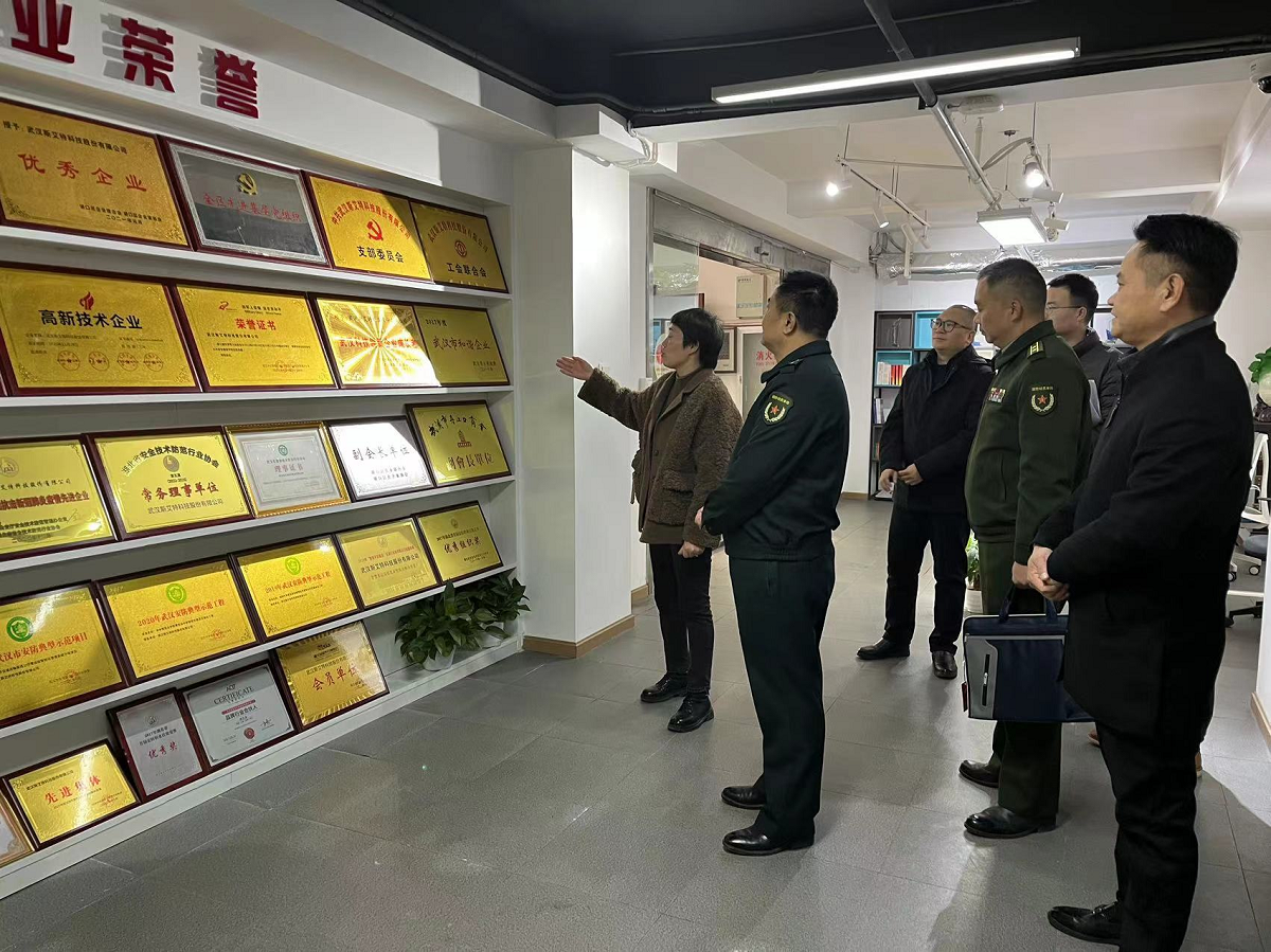 2023年12月29日,武漢市硚口區人民武裝部部長陳登朧一行,在長豐街道人民武裝部部長鄒敬碩的陪同下蒞臨我司考察指導,并就民兵編組工作進行了調研和部署。公司董事長兼總經理張濤、副總經理張厚元、行政人事部總監向麗等人熱情接待。