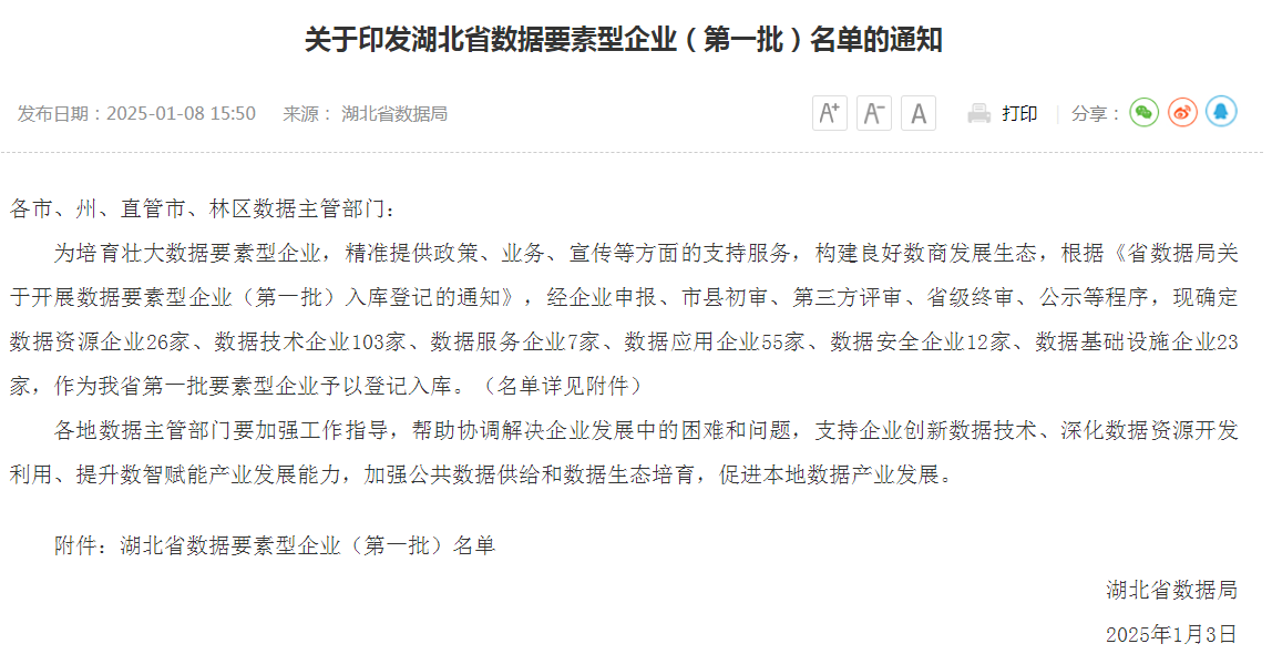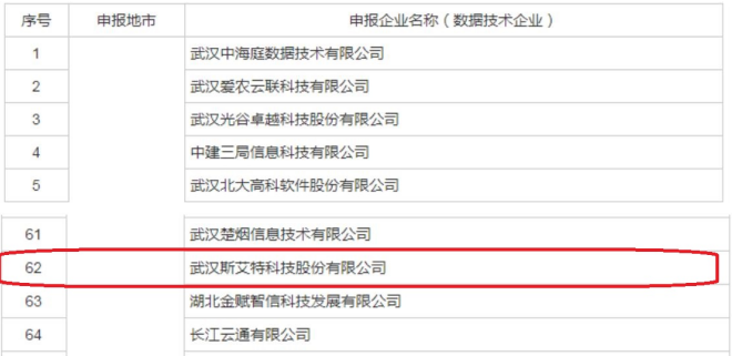 近日,湖北省數(shù)據(jù)局公示湖北省數(shù)據(jù)要素型企業(yè)(第一批)名單,武漢斯艾特成為首批登記入庫的“數(shù)據(jù)技術(shù)企業(yè)”。