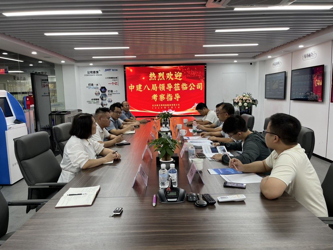 7月7日,中國建筑第八工程局有限公司華中分公司(以下簡稱“中建八局”)相關領導一行蒞臨武漢斯艾特科技股份有限公司(以下簡稱“武漢斯艾特”)考察指導。公司黨支部書記、董事長張濤攜各部門主要負責人熱情接待考察團一行,雙方通過座談交流與實地考察,圍繞深化合作、共促發展進行了深入探討。